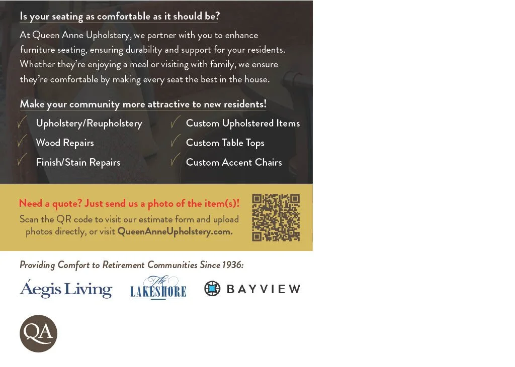 I designed these targeted postcard mailers and direct mail pieces promote QA Group and Queen Anne Upholstery to specific industry niches. Tailored for precision outreach, they combine striking design with strategic messaging to engage key audiences and showcase our furniture and upholstery expertise.